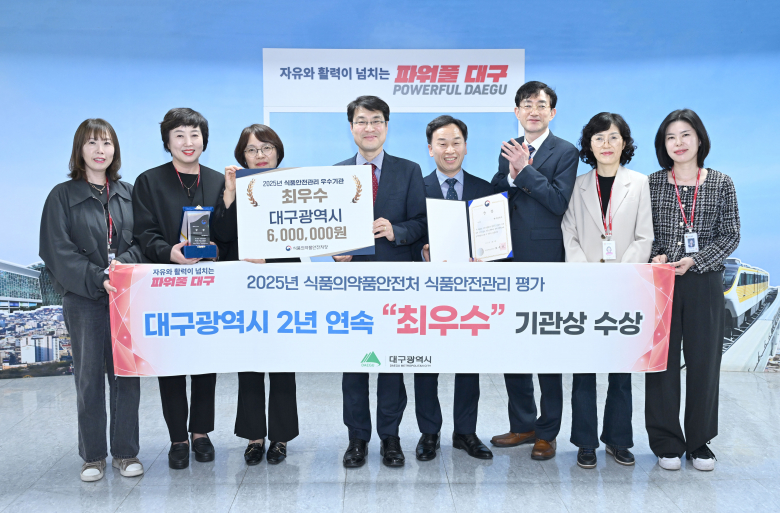 대구시는 식품의약품안전처가 실시하는 2025년 식품안전관리 우수기관 평가에서 시·도 단위 ‘최우수’ 기관으로 선정됐다.