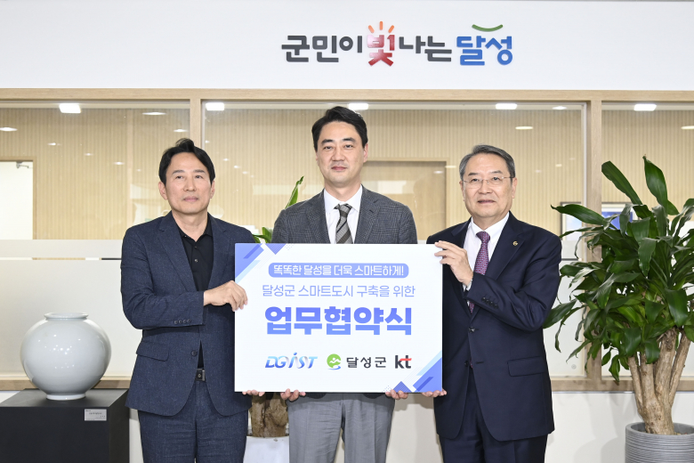 달성군은 지난 14일 대구경북과학기술원, KT 대구경북법인고객본부와 함께 스마트도시 구축을 위한 업무협약(MOU)을 체결했다고 밝혔다.