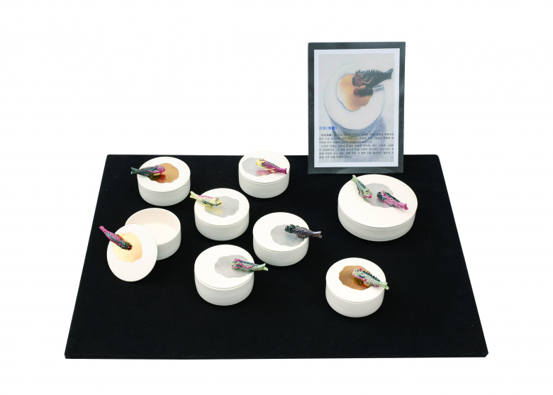 대상을 받은 이은경 작가(이안도자기)는 불교 사찰에서 사용되는 목어(木魚)와 민화 속 물고기의 상징을 바탕, 깨어 있음과 조화의 미학을 전하고자 ‘어화(漁畵)’를 제작했다고 밝혔다. 이경미기자