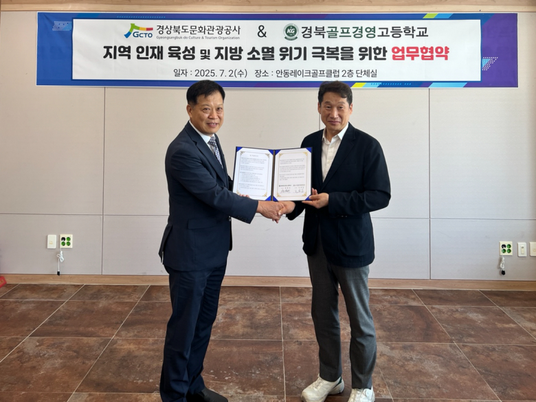 레저·스포츠 산업 분야의 실무형 인재를 양성하고 있는 경북골프경영고등학교는 지난 2일, 안동레이크골프클럽하우스에서 경북문화관광공사(안동레이크골프클럽)와 지역 인재 육성 및 지방 소멸 위기 극복을 위한 업무협약(MOU)을 체결했다고 밝혔다.
