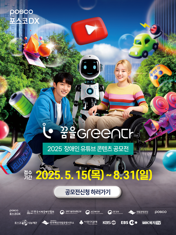 포스코DX는 유튜브 전문가 양성을 지원하는 꿈을 Greeen다’ 프로젝트를 운영하며, ‘2025 장애인 유튜브 콘텐츠 공모전’을 개최하고 있다.