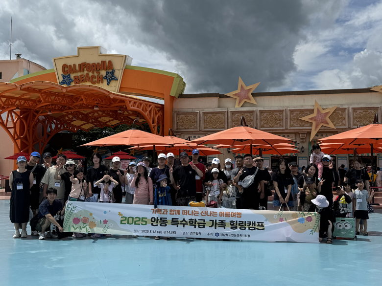 이번 프로그램에는 안동 지역 유·초·중·고 특수학급 학생과 가족, 특수교육 담당 장학사와 인솔 교사 등 70여명이 참여했으며, 프로그램에 참여한 가족들은 1박 2일 동안 경주캘리포니아비치, 경주박물관, 이상복명과 등 경주 주요 관광지에서 소통과 힐링의 시간을 가졌다.