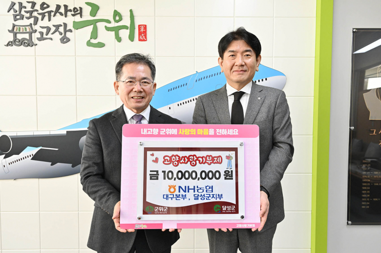 이날 기탁식에는 김진열 군위군수를 비롯해 손영민 농협중앙회 대구본부장, 이인희 농협은행 대구본부장, 김형년 달성군지부장, 박영철 군위군지부장, 한윤대 대구노조위원장 등이 참석해 지역 상생과 연대의 의미를 함께했다.