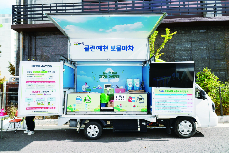 예천군이 자원순환 활성화와 올바른 분리배출 문화 정착을 위한 ‘클린예천 보물마차’ 운영을 시작했다고 9일 밝혔다. 2022년 9월부터 지역 읍·면을 순회하며 운영 중인 ‘클린예천 보물마차’는 주민들이 캔과 페트병 등 재활용품을 가져오면 포인트를 적립해 주는 서비스로, 지역 재활용 활성화와 생활폐기물 감량에 기여하고 있다.