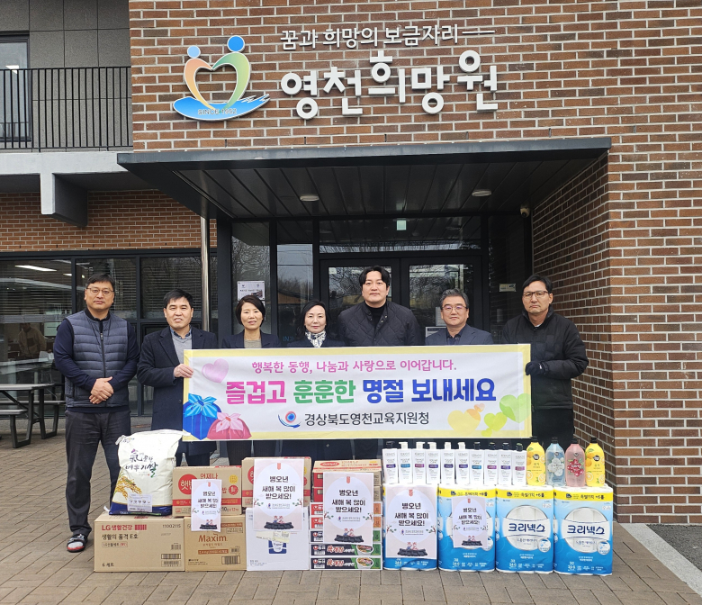 영천교육지원청은 10일, 설 명절을 맞아 영천 희망원을 방문해 지역 아동들을 위한 후원품을 전달했다. 이번 행사는 지역사회와 함께 따뜻한 나눔 문화를 실천하기 위해 마련된 것으로, 교육지원청은 세제, 휴지, 쌀 등 생필품을 지원하며 아이들에게 따뜻한 관심과 사랑을 전했다. 행사에는 신봉자 교육장을 비롯해 교육지원과장, 행정지원과장, 행정지원담당, 업무담당자 등 총 6명이 참여해 영천 희망원 관계자들과 환담을 나누고 현장의 의견을 청취했다. 신봉자 교육장은 “아이들이 지역사회 안에서 건강하고 행복하게 성장할 수 있도록 교육청이 지속적으로 관심을 갖고 지원을 이어가겠다.”며“앞으로도 다양한 사회공헌 활동을 통해 따뜻한 나눔 문화 확산에 앞장서겠다.”고 말했다. 박경철기자