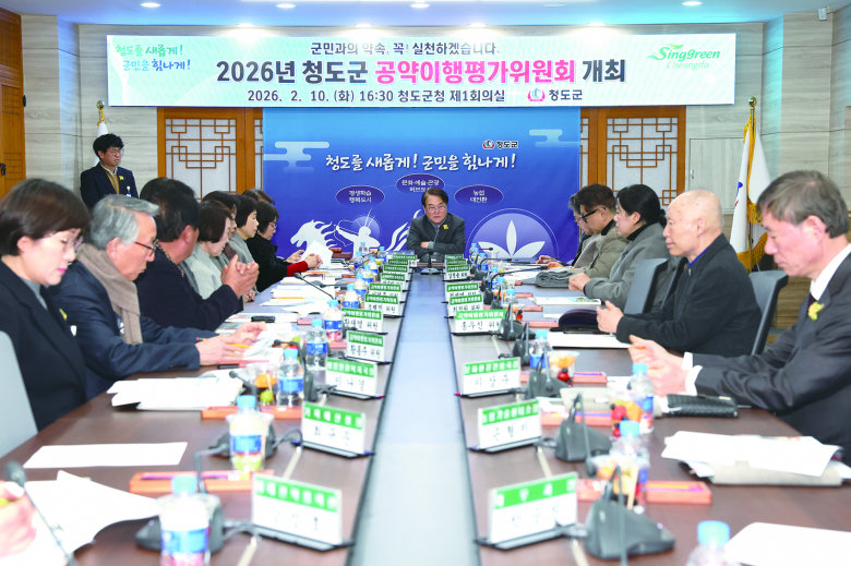 청도군은 10일 군청 제1회의실에서 ‘2026년 청도군 공약이행평가위원회’를 개최하고 민선 8기 공약사항에 대한 추진 상황을 점검했다.