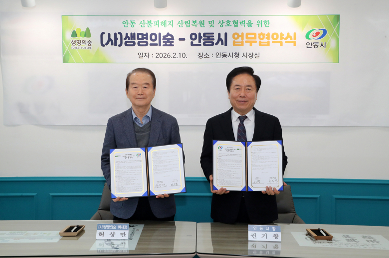 권기창 안동시장은 “산불로 상처 입은 안동의 산림을 복원하기 위해 선뜻 힘을 보태준 생명의숲에 깊은 감사를 드린다”며, “이번 협약을 계기로 안동의 숲이 더욱 건강하게 회복되고, 많은 시민이 숲의 소중함을 다시 한번 되새기는 계기가 되길 바란다”고 밝혔다. 김연태 기자