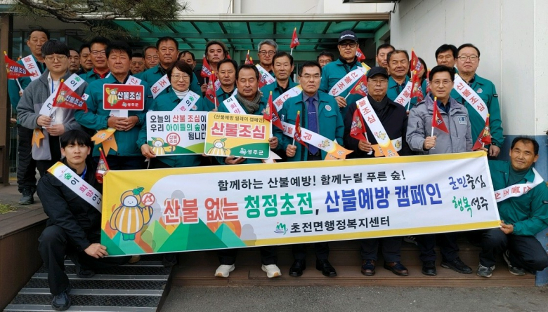 성주군 초전면은 11일 이장협의회 회원 및 초전면행정복지센터 직원 등 30여 명이 참석한 가운데 행정복지센터 전정에서 산불예방 릴레이 캠페인을 실시했다. 불법 소각행위 근절과 산불에 대한 경각심을 제고 하며, 특히 주민들의 자발적인 산불 예방 참여 독려를 위해 실시된 이번 캠페인은 지역과 마을의 상황을 누구보다 잘 아는 이장협의회원들의 적극 동참으로 뜨거운 열기를 띄었다.