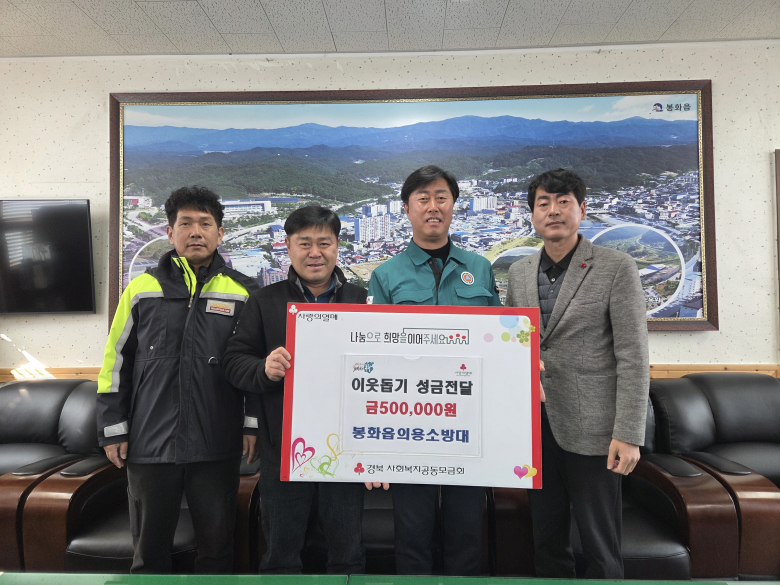 봉화읍의용소방대는 11일 봉화읍사무소를 방문해 지역 내 어려운 이웃을 돕기 위한 이웃돕기 성금 50만원을 기탁했다. 회원 40명으로 구성된 봉화읍의용소방대는 매년 꾸준한 나눔 활동을 이어오고 있으며, 손기종 봉화읍의용소방대장은 “지역 주민의 안전을 지키는 것이 의용소방대의 가장 큰 사명이지만, 어려운 이웃을 돕는 일 또한 중요한 역할이라고 생각한다”며, “작은 정성이지만 도움이 필요한 분들께 따뜻한 힘이 되기를 바란다”고 말했다.김규화기자