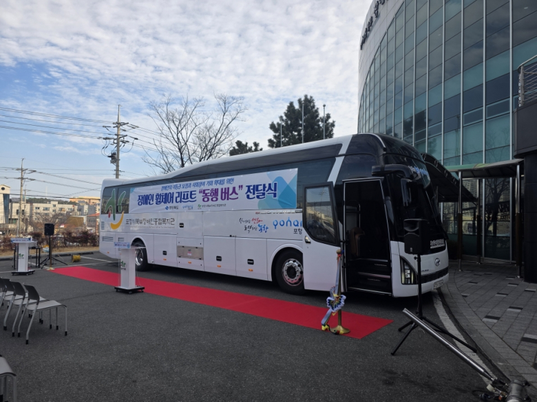 포항시가 교통약자의 이동권 보장을 위해 포항시북부장애인종합복지관(관장 김구태)에 ‘장애인 동행버스’를 전달했다.