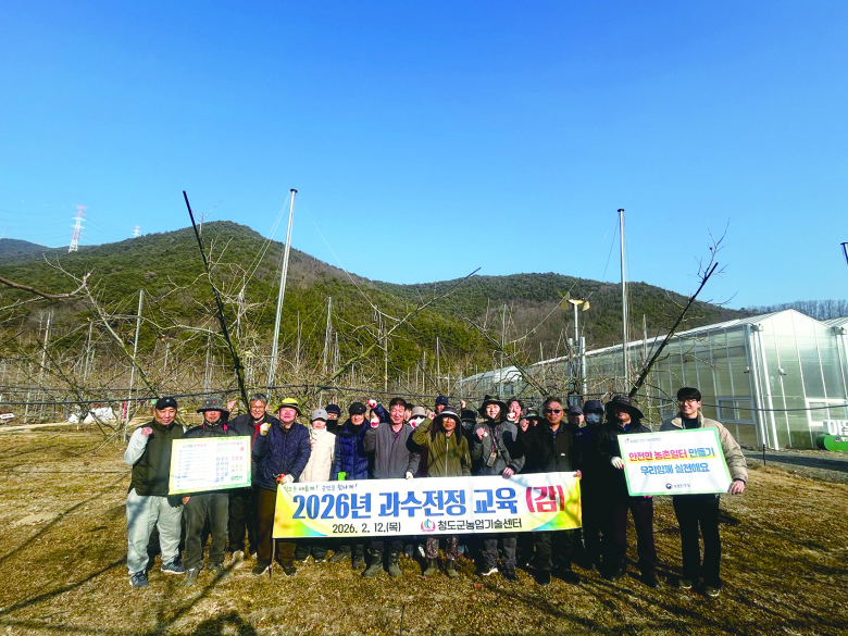 청도군은 지난 11, 12일 이틀간 복숭아·감 재배 농가를 대상으로 ‘2026년 과수전정반(복숭아·감) 교육’을 실시하고, 동계전정 핵심기술의 현장 확산에 나섰다.