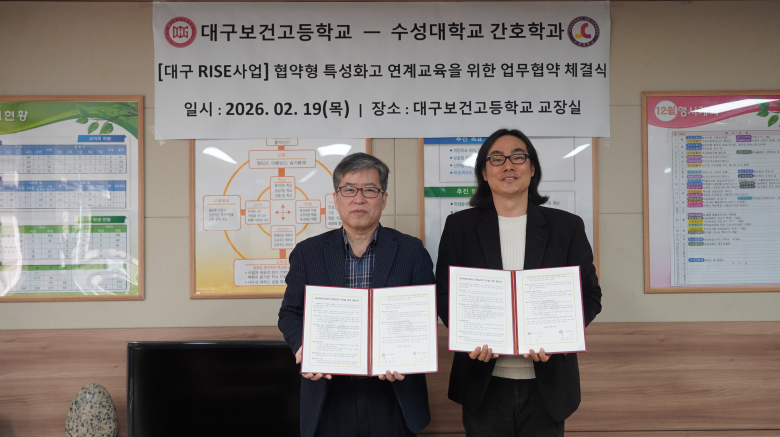 수성대학교와 대구보건고등학교 양교 관계자들이 참석한 가운데 19일 대구RISE사업 연계교육 추진 상호 협력 협약을 체결했다.