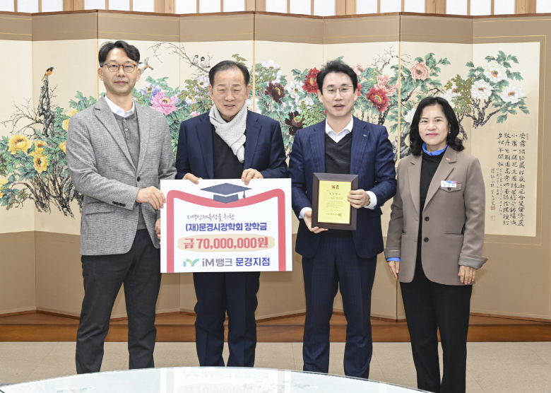 (재)문경시장학회는 지난 19일 지역인재 육성을 위한 장학금으로 NH농협은행 문경시지부에서 1억 4,300만 원을, iM뱅크 문경지점에서 7,000만 원을 각각 기탁했다고 밝혔다.