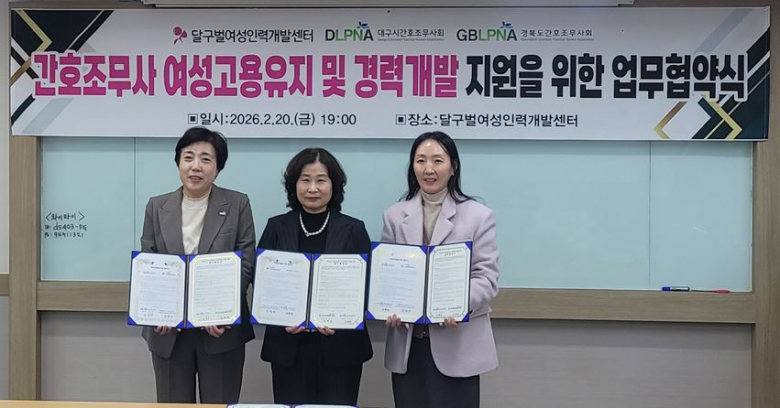 강영아 달구벌여성인력개발센터 관장은 “이번 협약을 통해 간호조무사들이 경력 단절 없이 전문성을 지속적으로 개발할 수 있는 기반이 마련되길 기대한다”며, “앞으로도 지역 전문직 여성의 고용 안정과 역량 강화를 위해 유관기관과의 협력을 지속적으로 확대해 나가겠다”고 밝혔다.