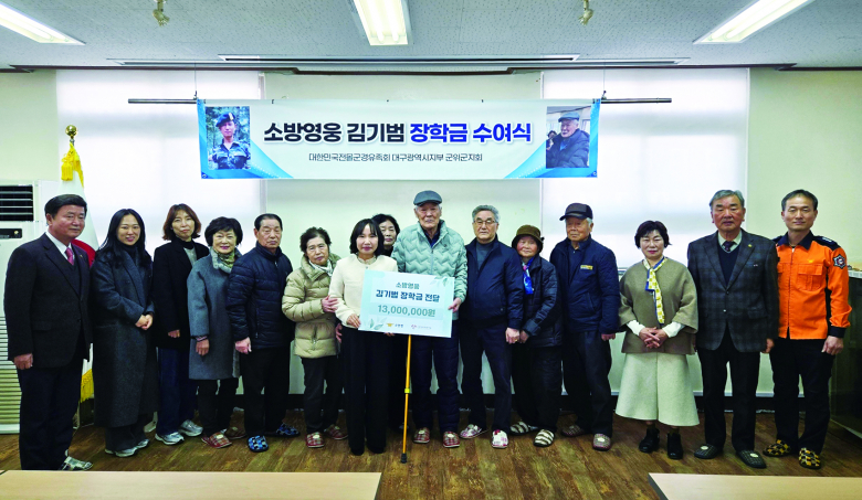 전몰군경유족회 군위군지회는 지난 20일 소방영웅 고(故) 김기범 소방교의 숭고한 희생정신을 기리고 전몰군경유족회 손자녀 8명을 격려하기 위한 ‘김기범 장학금 수여식’을 개최했다.