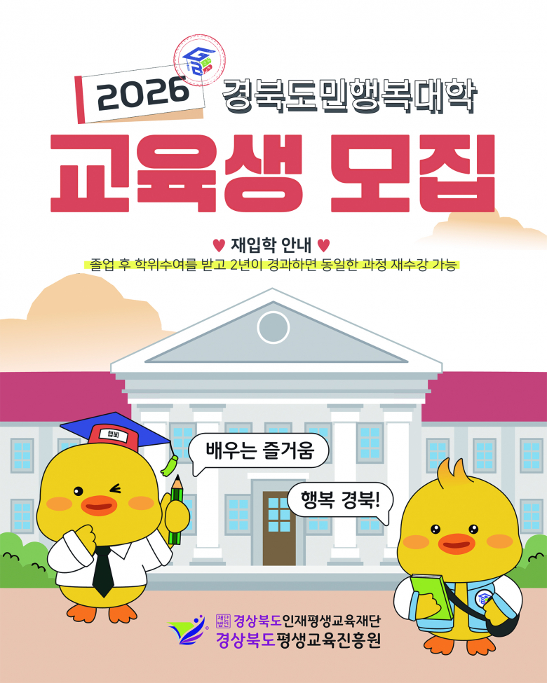 상주시는 시민들에게 체계적이고 수준 높은 평생학습 기회를 제공하기 위해 ‘2026학년도 경북도민행복대학 상주캠퍼스’ 신입생을 모집한다고 밝혔다.