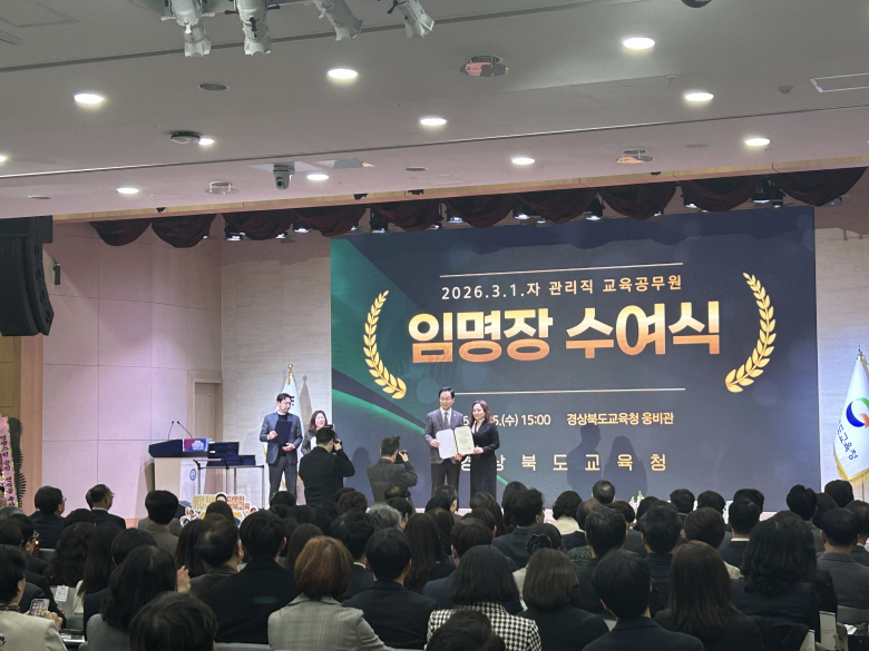 경북교육청은 25일 본청 웅비관에서 2026년 3월 1일 자로 신규 임용되는 유·초·중등 관리직 교육공무원에게 임명장을 수여했다고 밝혔다.