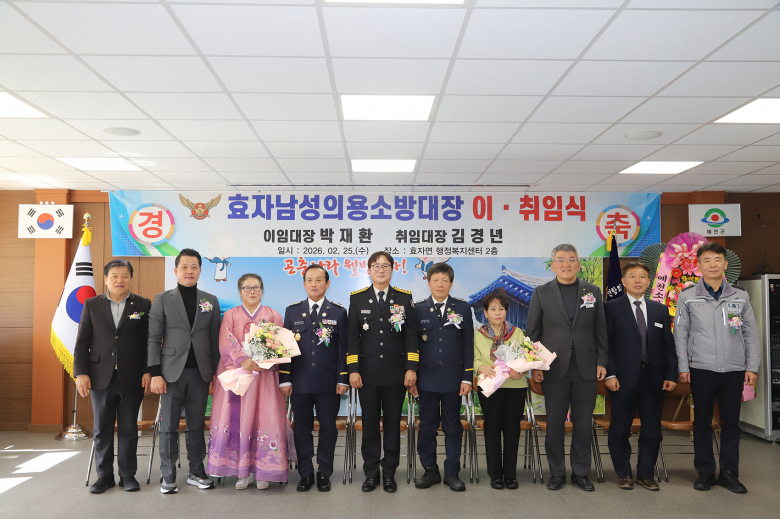 예천소방서는 25일 효자면 행정복지센터에서 의용소방대연합회 관계자와 지역 기관·단체장 등 50여 명이 참석한 가운데 효자남성의용소방대장 이·취임식을 열고 새로운 도약을 다짐했다. 이번 행사는 그동안 지역 안전을 위해 헌신해 온 박재환 이임대장의 노고를 격려하고, 새로 취임한 김경년 대장의 출발을 축하하기 위해 마련됐으며, 행사에서는 공로패 전달과 함께 감사 인사가 이어졌다.금인욱기자
