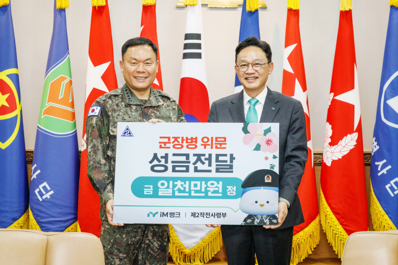 iM뱅크(아이엠뱅크)는 육군 제50보병사단과 '1사1병영' 협약을 맺고 정기적인 위문활동을 이어왔으며, 올해는 지역 안보의 핵심 거점인 제2작전사령부까지 기부 대상을 확대하며 군 장병 지원에 힘을 보탰다.