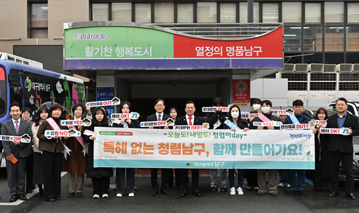 대구 남구는 지난 3일 ‘특혜 근절 및 청렴 문화 확산’을 위한 청렴 캠페인을 실시했다고 밝혔다.