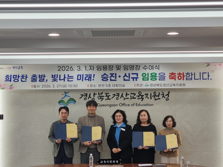 경산교육지원청 허영선 교육지원과장은 “교육은 아이들의 꿈을 키우는 일이자, 우리 사회를 더욱 건강하게 만드는 밑거름이다.”며 “새로운 출발선 위에서 항상 따뜻한 마음과 소명의식으로 학생을 지도해 주기 바란다.”고 당부하였다. 경산교육지원청은 교원이 동료와 함께 협력하며, 긍정적인 마인드로 성장하는 교사로 성장할 수 있는 교직문화 조성에 지원을 아끼지 않겠다고 하였다. 박경철기자