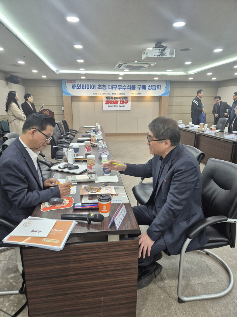 대구광역시는 지난 6일 시청 동인청사 소회의실에서 해외 바이어 초청 ‘대구우수식품 구매상담회’를 개최하고 지역 우수식품의 해외 판로 개척에 나섰다.