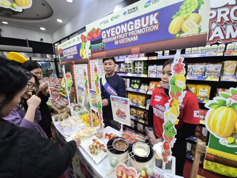 행사에서는 경북 프리미엄 과일(딸기·참외·포도)과 가공농식품을 중심으로 소비자 홍보와 바이어 상담이 함께 진행되며 현지 소비자 반응을 확인하고 신규 판로 개척을 모색했다.