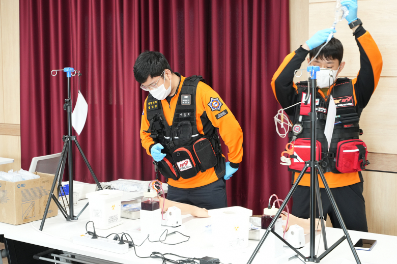 각 분야별 평가 종목은 ▲ 화재 분야 호스읽기 평가 ▲ 구조 분야 구조대상자 들것 고정 평가 ▲ 구급 분야-(1급 응급구조사 및 간호사) 의료지도 및 정맥로 확보, (2급 응급구조사) 자동심장충격기(AED) 및 기본소생술 평가이다.