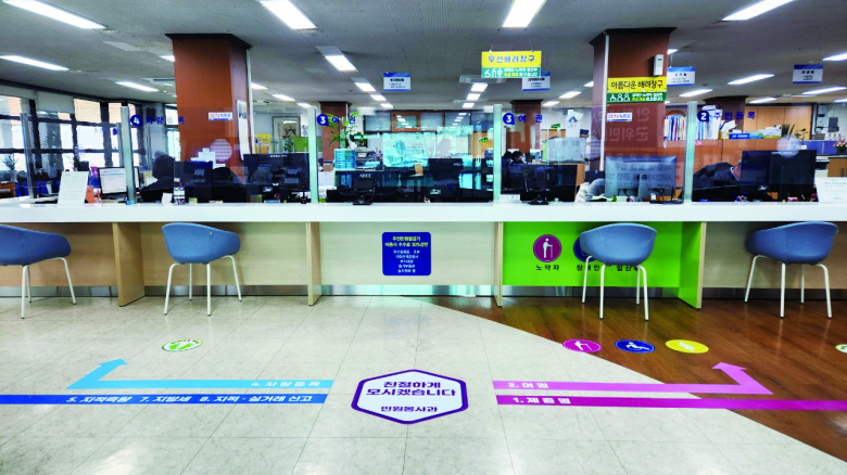 아울러 민원인과 직원 모두의 안전과 개인정보 보호를 위해 민원 창구에 안전 가림막을 설치하였으며, 민원인이 원하는 업무 창구를 쉽게 찾을 수 있도록 민원실 바닥에 민원 유도선을 설치하여 민원 동선을 명확히 하는 등 이용 편의를 높였다.박효명기자