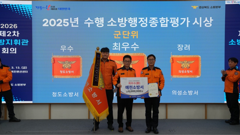 이날 시상식에서는 ▲시 단위: 최우수 구미소방서, 우수 경산소방서, 장려 김천소방서 ▲군 단위: 최우수 예천소방서, 우수 청도소방서, 장려 의성소방서가 각각 수상했다. 예천소방서는 군 단위 지역 특성을 고려한 맞춤형 화재 예방 정책 추진과 현장 중심 재난 대응체계 강화 등에서 높은 평가를 받아 군 단위 최우수관서로 선정됐다.