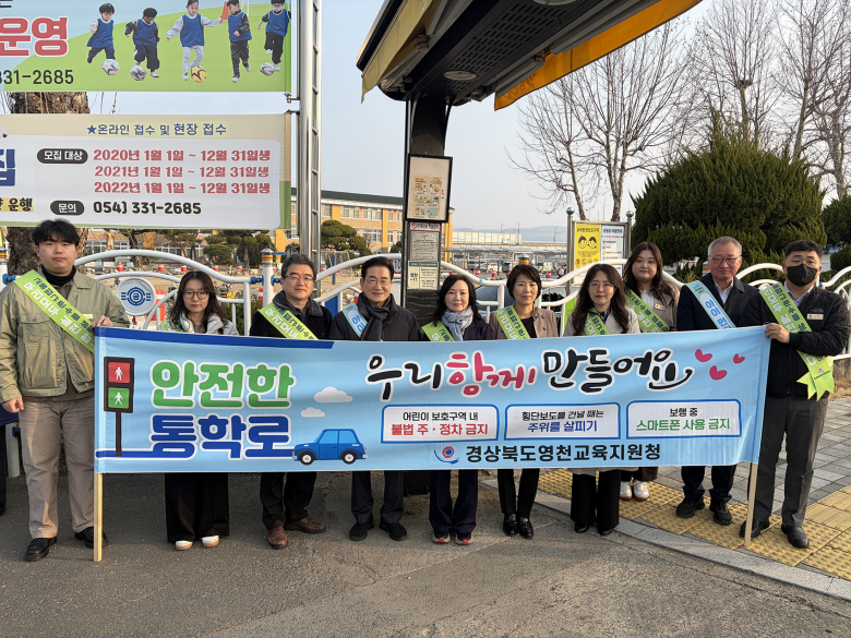 영천교육지원청은 17일 금호초등학교 교문 앞에서 영천경찰서 등 유관기관과 협력하여 안전한 교통문화 정착 및 안전한 통학로 만들기를 위한 교통안전 캠페인을 실시하였다. 이날 실시한 캠페인은 영천교육지원청 학교지원센터를 비롯하여 영천경찰서, 영천시청, 금호초등학교 교직원, 녹색어머니회 등 여러 유관기관이 참여하여 어린이 보호구역 내 교통안전 수칙 준수를 위한 홍보를 진행하였다.박경철기자