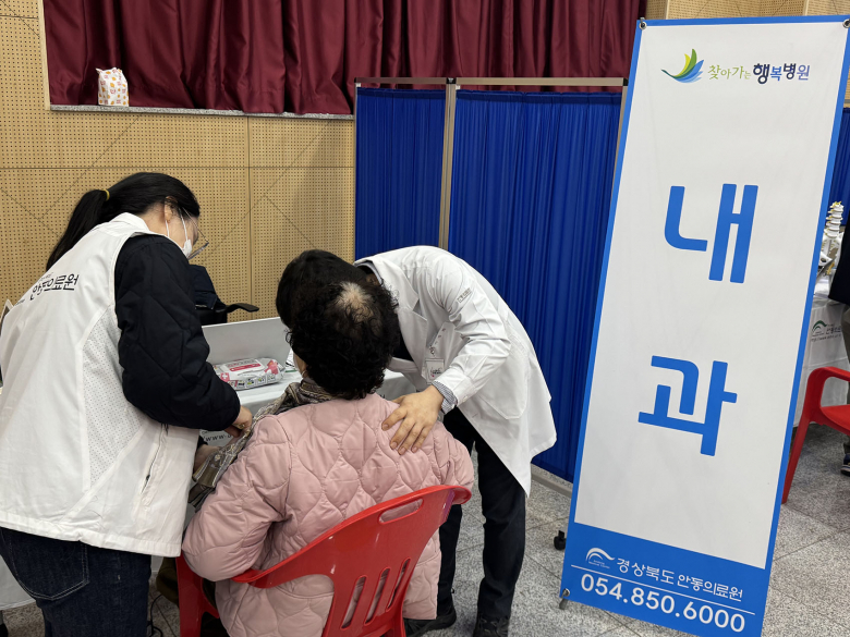 안동의료원은 내과, 정형외과, 안과, 산부인과 전문의 진료를 비롯해 X-ray 촬영, 안저·안압 검사, 심전도 및 혈액 검사, 물리치료, 약 처방 등 다양한 의료서비스를 제공해 주민 200여 명이 진료를 받았다. 특히 진료 과정에서 추가 검사나 치료가 필요한 주민은 안동의료원으로 연계해 정밀검사와 입원치료, 수술 등을 지원하고 퇴원 이후에도 지역사회 돌봄사업과 연계해 지속적인 건강관리가 가능하도록 했다.