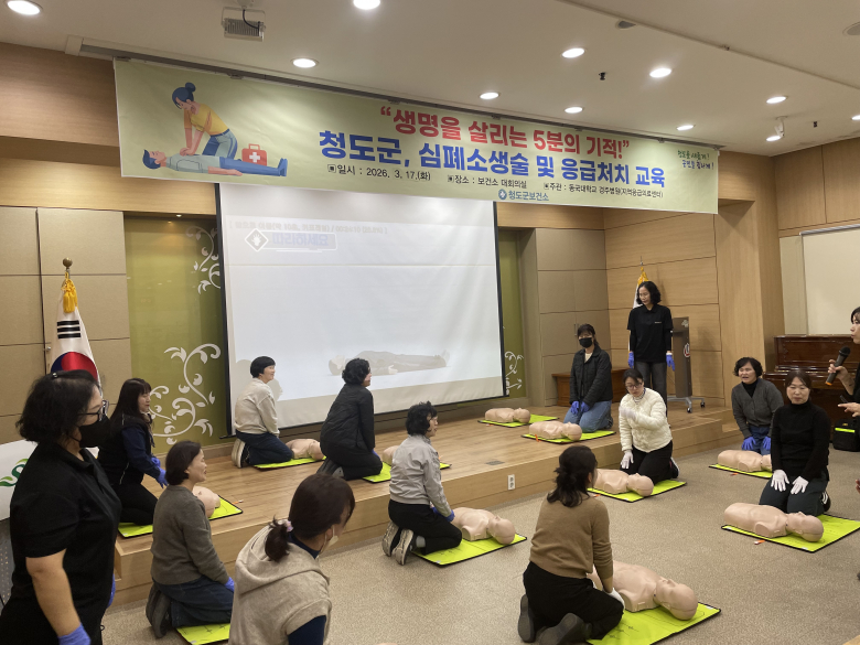 청도군은 17일 보건소 4층 대회의실에서 청도재가노인통합지원센터(청도읍 고수리) 생활지원사 34명을 대상으로 심폐소생술과 응급처치 교육을 진행했다고 밝혔다.