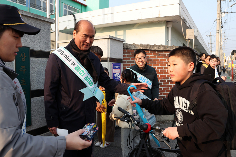 상주시는 17일 상주초등학교 후문에서 아이먼저 안전한 등굣길 조성 및 교통안전 인식 강화를 위한 교통안전 캠페인을 실시했다.