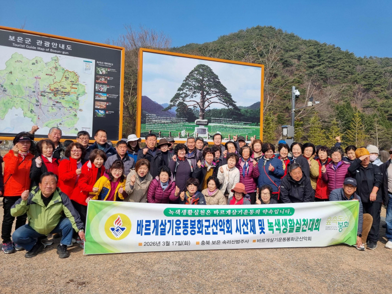 바르게살기운동 봉화군협의회 산악회는 지난 17일, 산악회원 80여 명이 참석한 가운데 충북 보은 속리산 법주사에서 2026년 안전산행을 기원하는 시산제를 실시했다. 이어 참석자들은 속리산 등반을 진행하며 ‘녹색생활실천대회’를 함께 이어갔다.