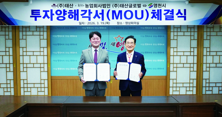 영천시는 19일 ㈜태산, 농업회사법인 ㈜태산글로벌과 220억원 규모의 투자협약(MOU)을 체결했다.