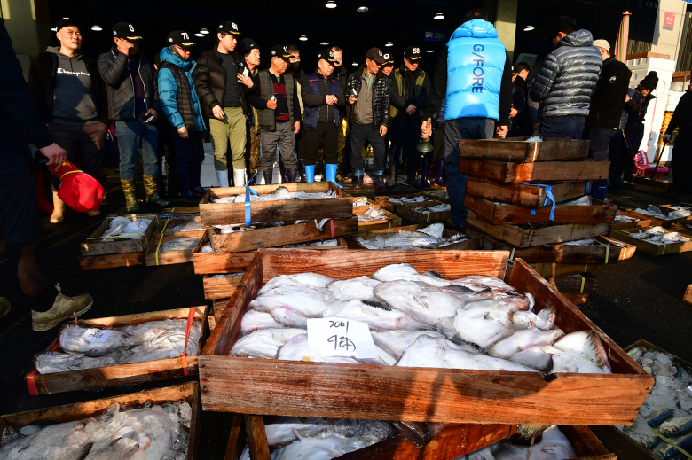 23일 경북 포항수협 죽도위판장에서 싱싱한 수산물 경매가 한창이다. 뉴스1