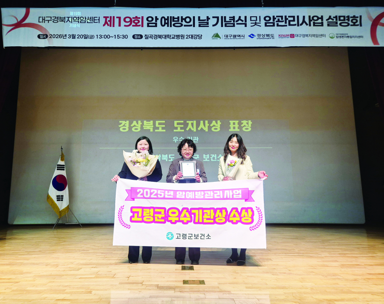 고령군은 지난 20일 칠곡경북대학교병원 대구경북지역암센터에서 개최된 ‘제19회 암예방의 날 기념식’에서 2025년 암예방관리사업 우수기관상을 수상했다.