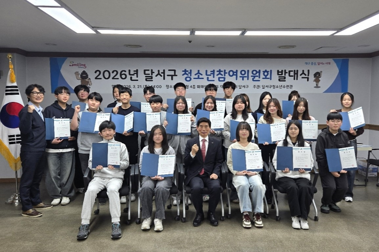 대구 달서구는 청소년이 직접 정책 수립과 실행 과정에 참여하는 기반을 마련하기 위해 지난 21일 2026년 달서구청소년참여위원회 발대식을 개최했다고 밝혔다.