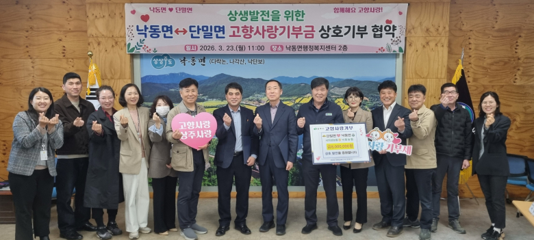 의성군 단밀면은 23일 상주시 낙동면 행정복지센터에서 상주시 낙동면과 고향사랑기부제의 성공적인 정착을 위한 고향사랑기부제 이웃사촌 업무협약식을 체결했다고 밝혔다.