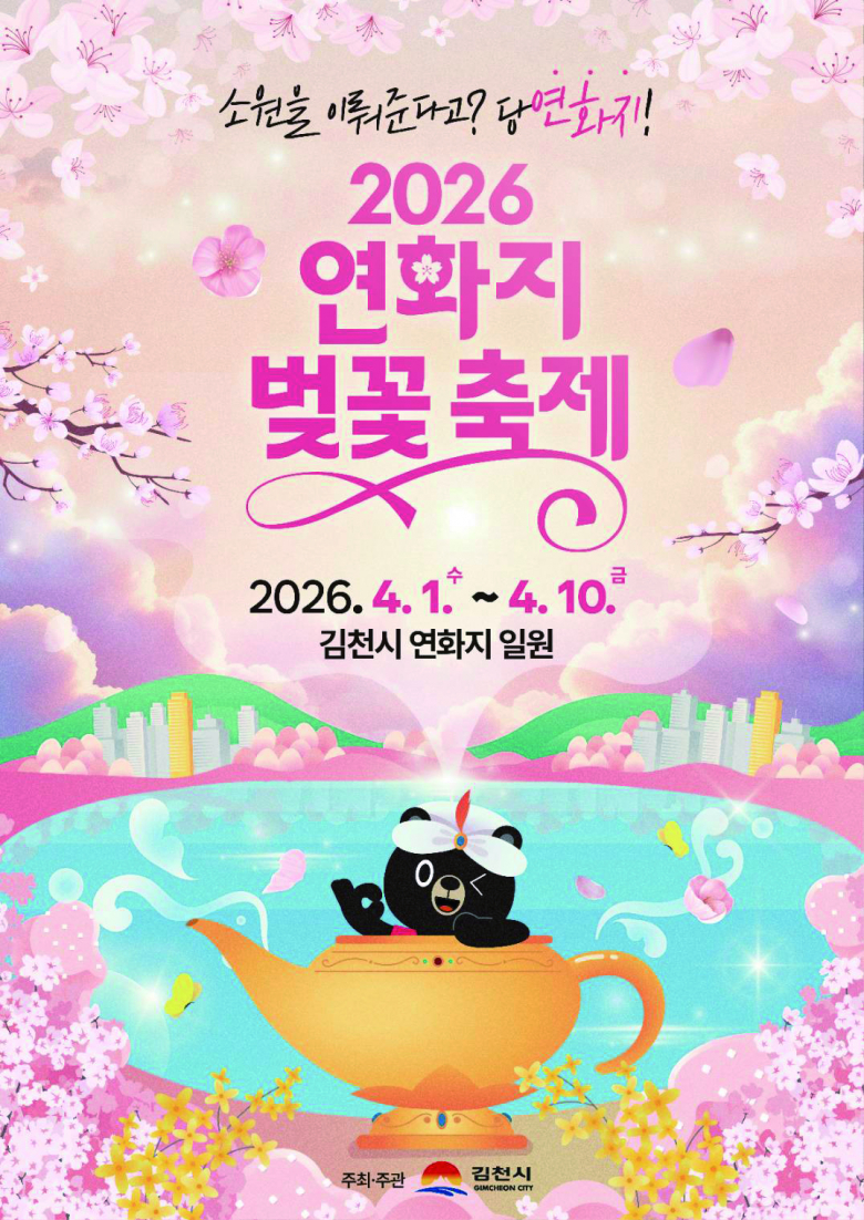 김천시는 내달 1일부터 10일까지 10일간 2026 연화지 벚꽃 축제를 개최한다고 밝혔다.