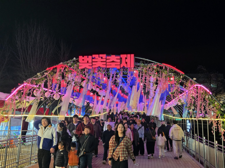 한편, 이번 축제는 방문객들이 축제장에 오래 머무르며 즐길 수 있도록 체류형 콘텐츠와 감성 체험 프로그램을 대폭 강화했다. 타로와 사주를 통해 고민을 나누는 ‘벚꽃 마음상담소’를 비롯해 화려한 조명으로 밤을 수놓는 미디어 아트 ‘빛의 벽’, 소망을 담은 ‘벚꽃 소원 터널’ 등 다채로운 신규 콘텐츠가 관광객들의 감성을 자극한다. 특히 벚꽃 아래서 편안하게 휴식을 취할 수 있는 ‘체리블룸 버블 라운지’는 이번 축제의 백미로 꼽힌다.