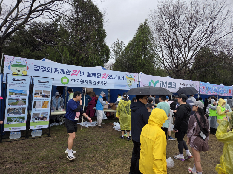 한국원자력환경공단은 지난 4일 경주시 보문관광단지에서 제33회 경주벚꽃마라톤대회에 참여해 시민들과 소통하는 시간을 가졌다. 이날 150여 명의 공단 임직원과 가족들은 중·저준위 2단계 처분시설의 안전한 운영과 지역과의 상생 협력을 다짐하는 구호(플래카드)를 들고 경주에 참가했다.