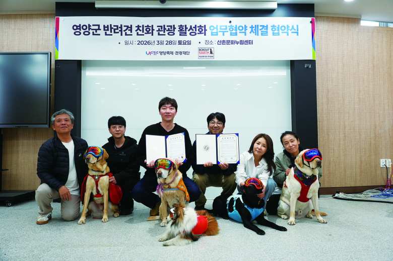 (재)영양축제관광재단은 지난달 28일 영양군 산촌문화누림센터에서 박스아웃랩과 ‘영양군 반려견 친화 관광 활성화’를 위한 업무협약(MOU)을 체결하고, 반려견과 함께하는 ESG 관광 모델 구축에 본격 나섰다.