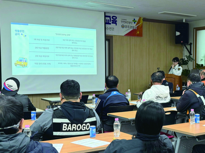 경주경찰서 교통과 경찰관이 강사로 나서 실제 사고 및 단속 사례 중심 교육을 실시했다.서경규기자
