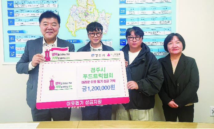 경주시는 경주푸드트럭협회가 지역의 어려운 이웃을 위해 성금 120만원을 기탁했다고 16일 밝혔다.