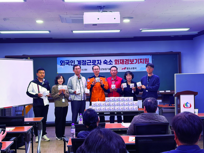 청도군은 14일 청도군 농업기술센터 농업교육관에서 외국인 계절근로자를 고용하고 있는 50농가를 대상으로 고용주 교육을 실시하고, 외국인 계절근로자의 안전한 거주환경 조성을 위하여 청도소방서와 협력해 숙소용 화재경보기를 지원했다고 밝혔다.