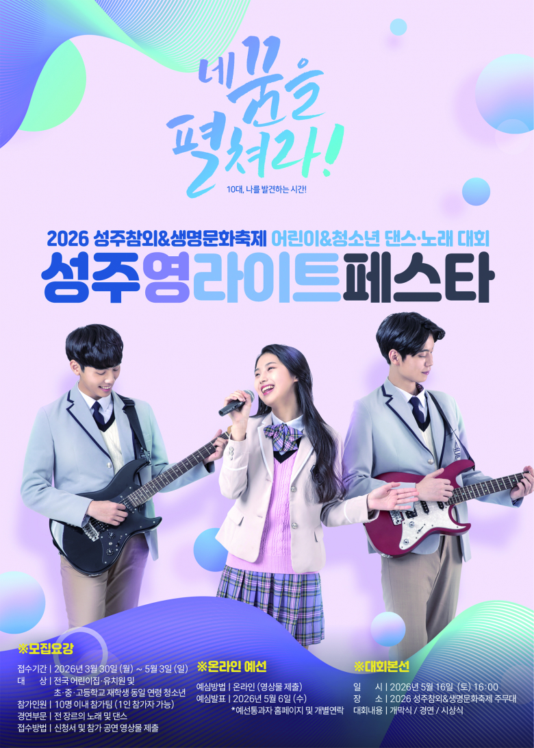 성주군축제추진위원회에서는 내달 3일까지 ‘2026 성주 영라이트 페스타’ 참가자를 모집한다.