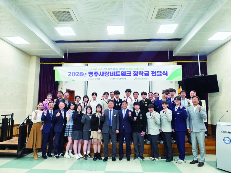 재경 영주 출신 재계, 관계, 법조계, 학계, 언론계 인사들의 모임인 영주사랑네트워크가 지난 17일 영주교육지원청에서 영주지역 9개 고등학교 학생 20명에게 1,000만원의 장학금을 전달했다.