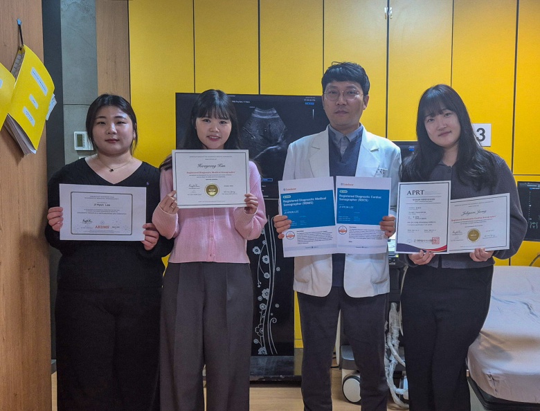 이외에도 기수별로 ▲2기 졸업생 도유미(RDCS 심장, 전문 복부), 남해인(SPI 물리, 전문 복부·유방), 김야운(SPI 물리) ▲3기 재학생 정주현(RDCS 심장, 전문 심장), 김화영(RDMS 유방), 이진희(전문 근골격) 학생이 각자의 전공 분야에서 국내외 자격을 연이어 취득하며 실무 역량을 입증했다.박경철기자